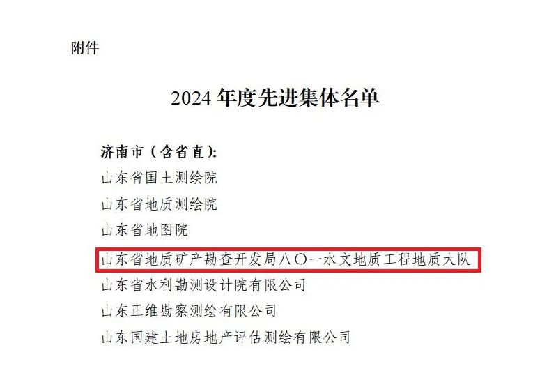 近日,山东省测绘地理信息学会传来喜讯,山东省地矿局八〇一队荣获2024年度省测绘地理信息学会“先进集体”称号;卢晓龙同志获2024年度“先进个人”称号。这两项荣誉的获得,标志着我队在测绘地理信息领域的卓越表现和显著成就得到了业内的高度认可。